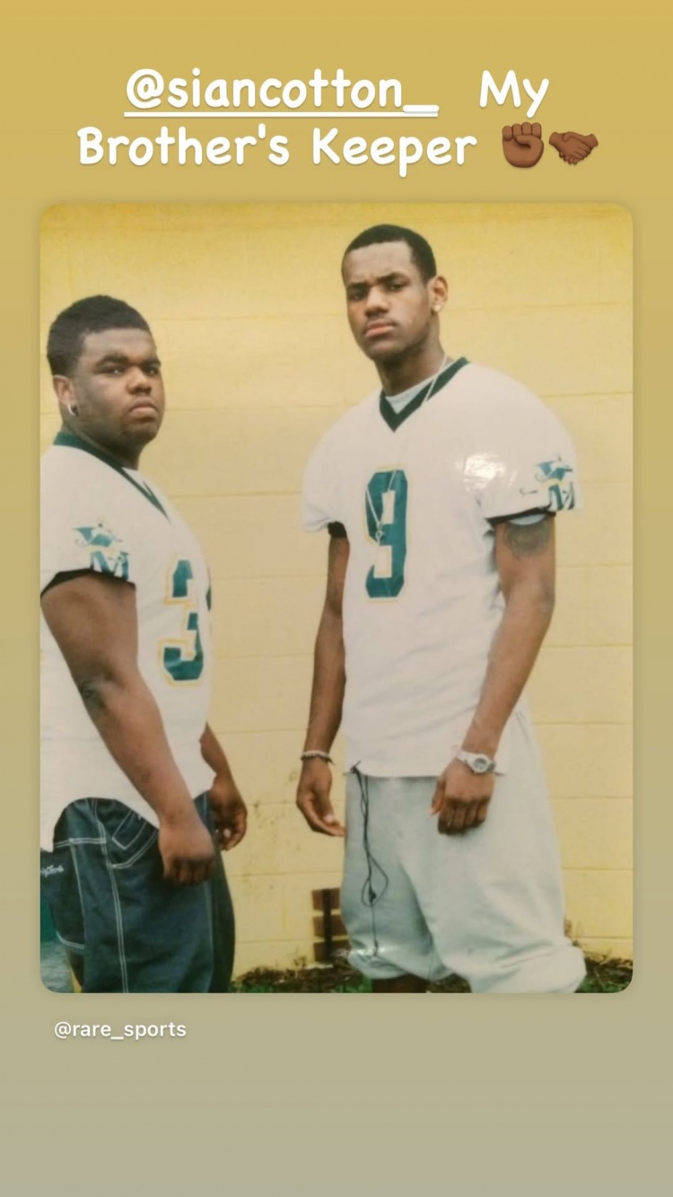 James đã chuyển tiếp một bức ảnh do media rare_sports đăng tải về anh ấy và đồng đội thời trung học Sian Cotton mặc áo thi đấu của đội bóng đá trường trung học St. Vincent St. Mary.