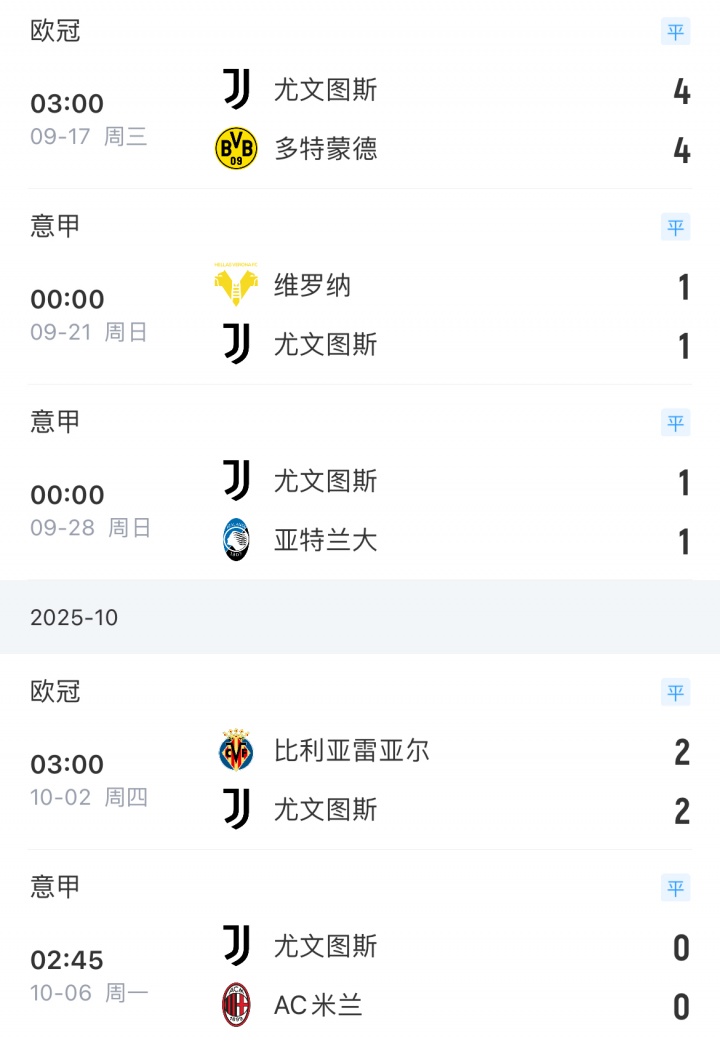 Juventus 0-0 Milan ở vòng 6 của Serie A, và hiện có 5 trận hòa liên tiếp trong mỗi cuộc thi, vượt qua kỷ lục của bốn trận hòa dài nhất liên tiếp mùa trước.