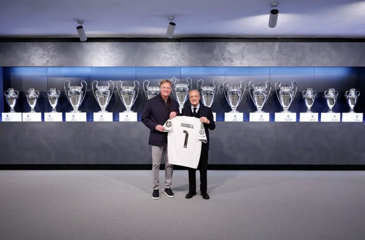 Hôm nay, Chủ tịch Real Madrid Florentino Perez và Ủy viên NFL Roger Goodell đã gặp mặt và trao quà. Florentino được tặng một quả bóng đá, còn Goodell được tặng áo số 1 của Real Madrid và một người mẫu ở Bernabeu.