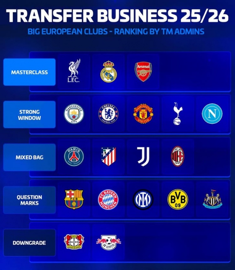 Cửa sổ chuyển nhượng mùa hè của các giải đấu chính thống đã kết thúc, và "Thị trường chuyển nhượng" cũng đã đánh giá các hoạt động chuyển nhượng của nhiều câu lạc bộ châu Âu vào mùa hè này: