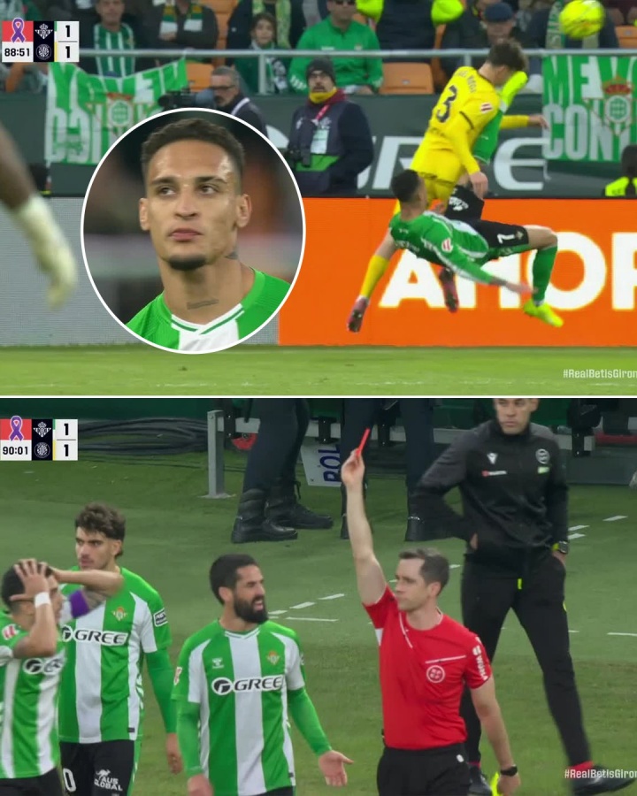 Betis hòa 1-1 với Girona ở vòng này. Phút 90, Anthony tung cú đá từ trên cao vào đầu đối thủ. Trọng tài đã kiểm tra VAR và đuổi anh ta khỏi thẻ đỏ trực tiếp.